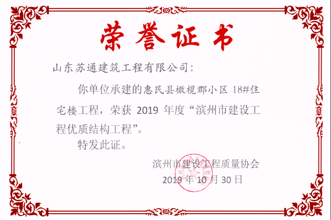 • 喜訊:我公司三位同志獲評濱州市建筑企業(yè)優(yōu)秀項目經(jīng)理稱號